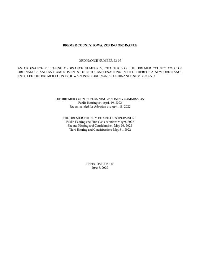 Get the free Bremer County, Iowa, Zoning Ordinance