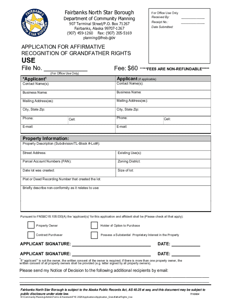 Get the free Application for Affirmative Recognition of Grandfather Rights