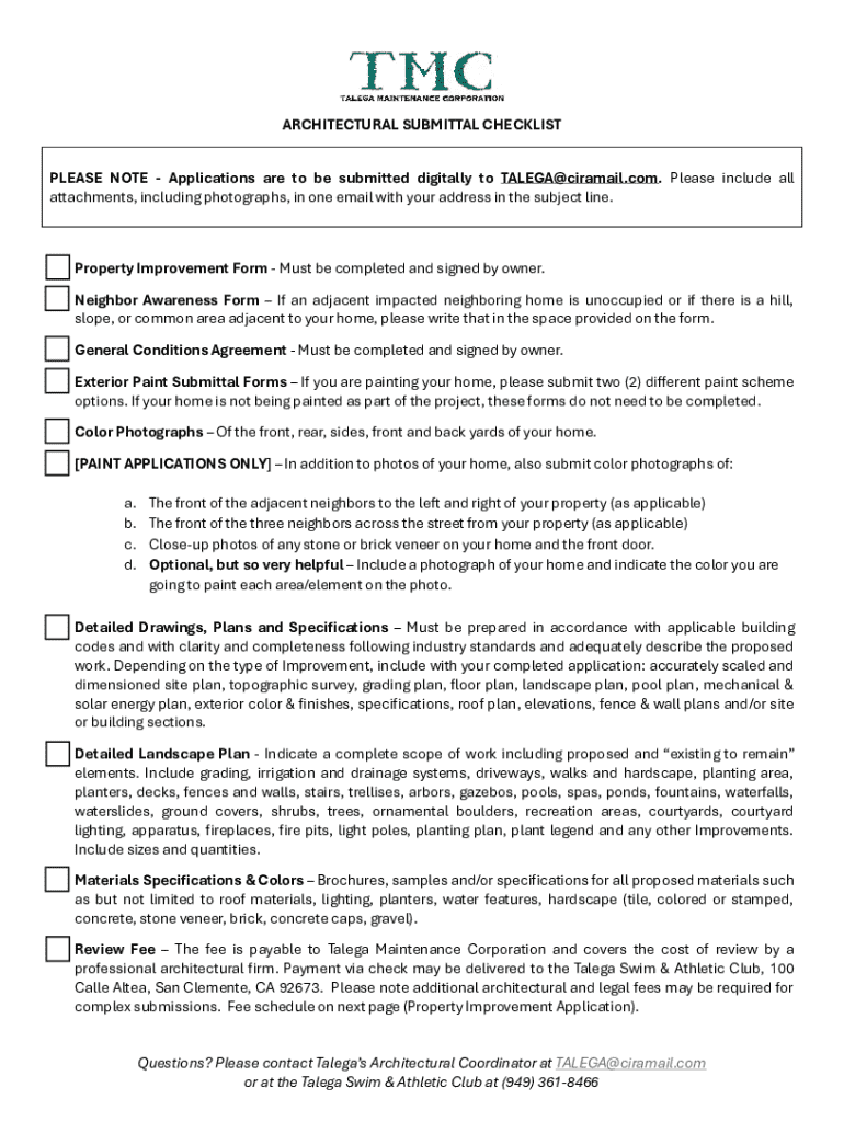 Fill out your architectural submittal checklist online with pdfFiller!