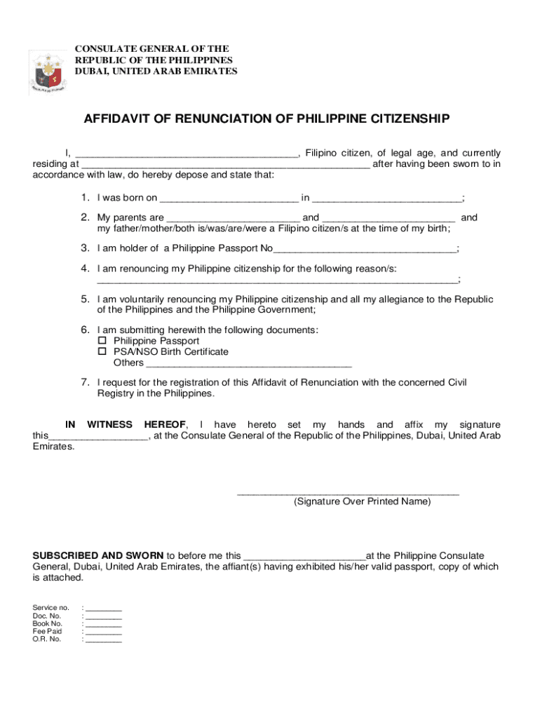 Get the free Affidavit of Renunciation of Philippine Citizenship