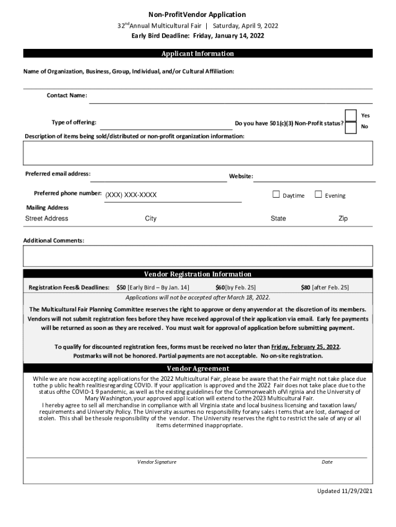 Get the free Non-profit Vendor Application
