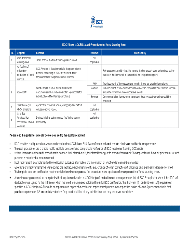 Get the free Iscc Eu and Iscc Plus Audit Procedures for Forest Sourcing Area