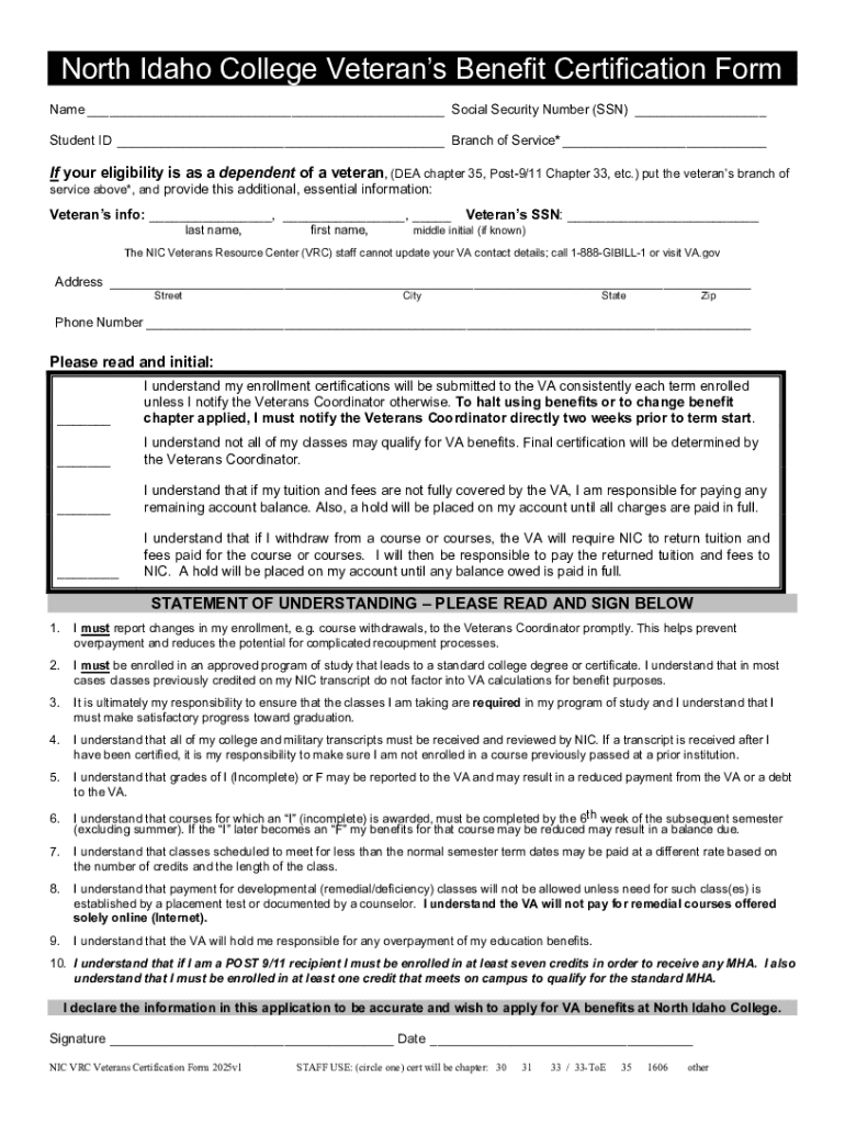 North Idaho College Veterans Form: A Comprehensive Guide