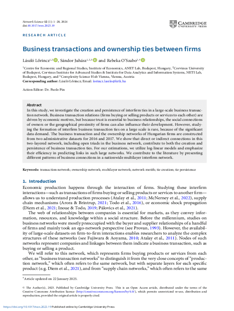 Get the free Business Transactions and Ownership Ties Between Firms