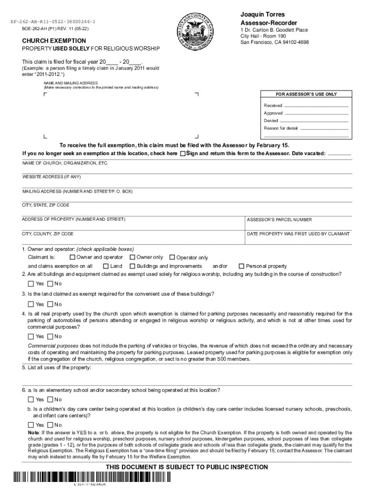 What is church exemption claim form?