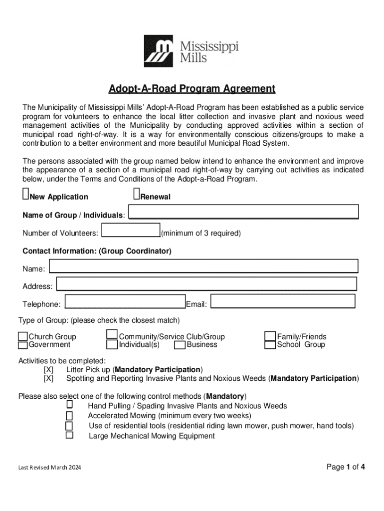 Adopt-a-Road Program Agreement Form: A Comprehensive How-To Guide