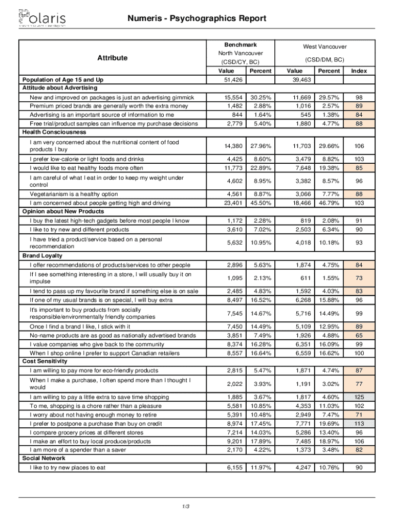 Frequently asked questions (FAQ) about the Numeris psychographics report form
