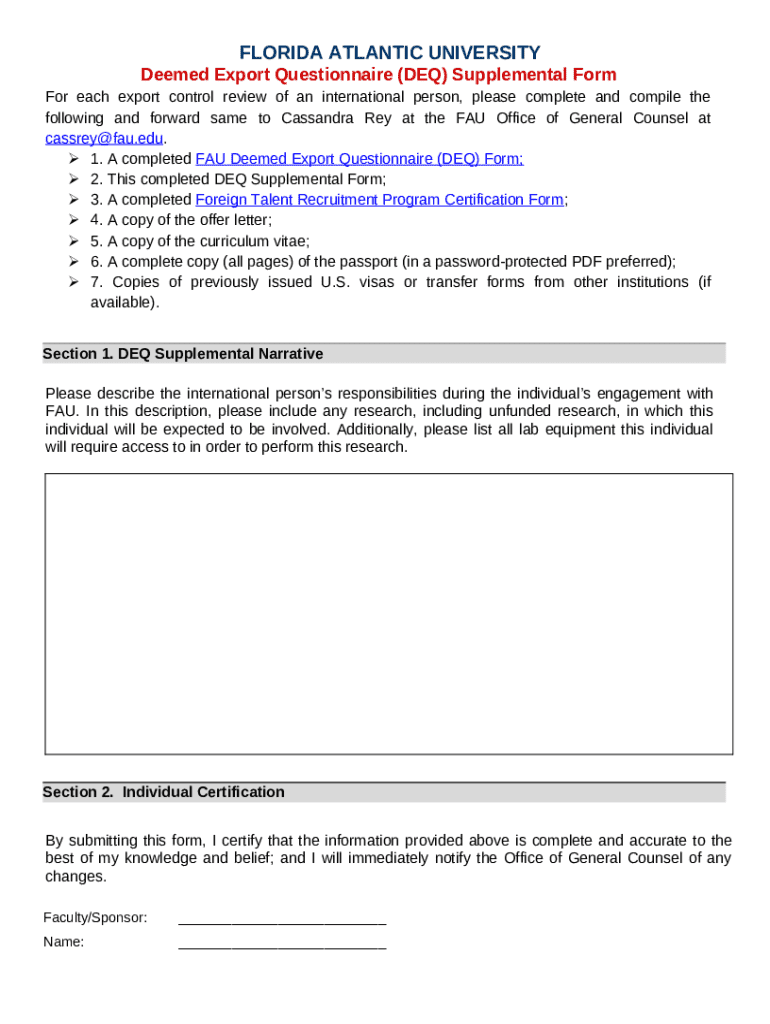 Deemed Export Questionnaire (deq) Supplemental word template: frequently asked questions