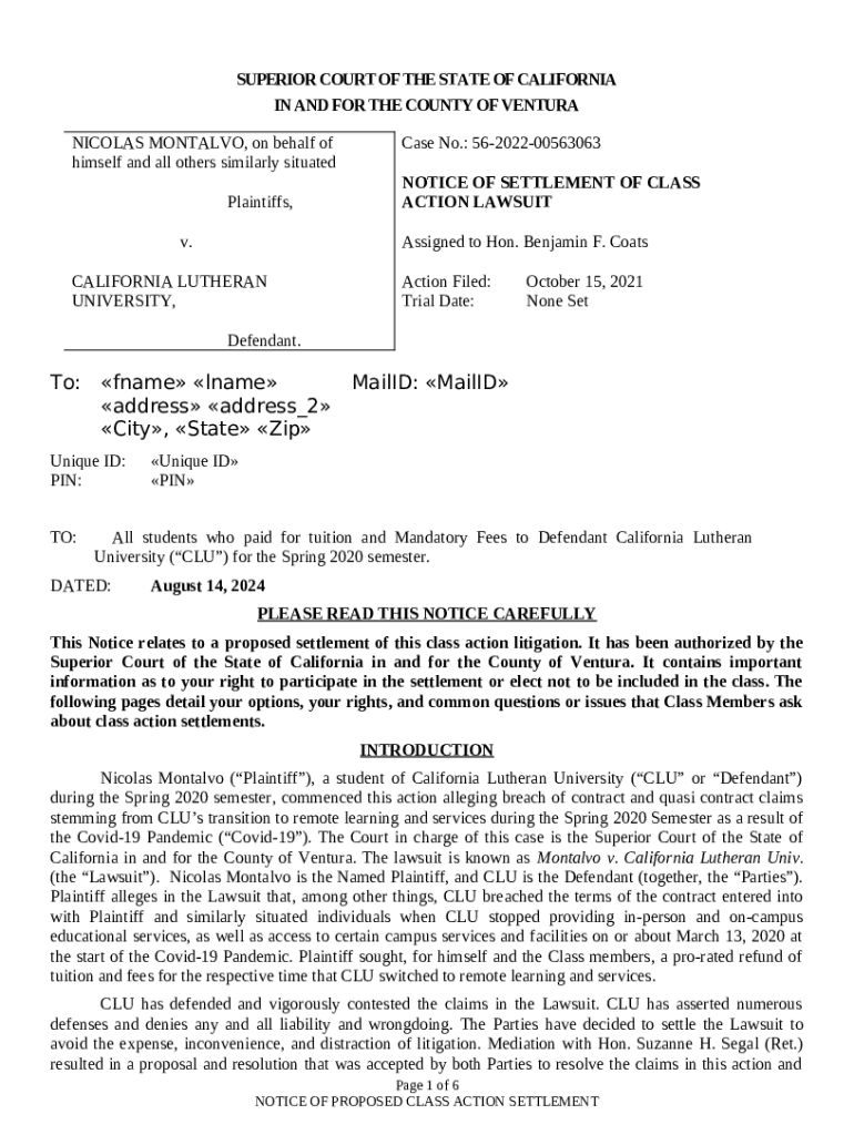 What is Notice of Settlement of Class Action Lawsuit Form?
