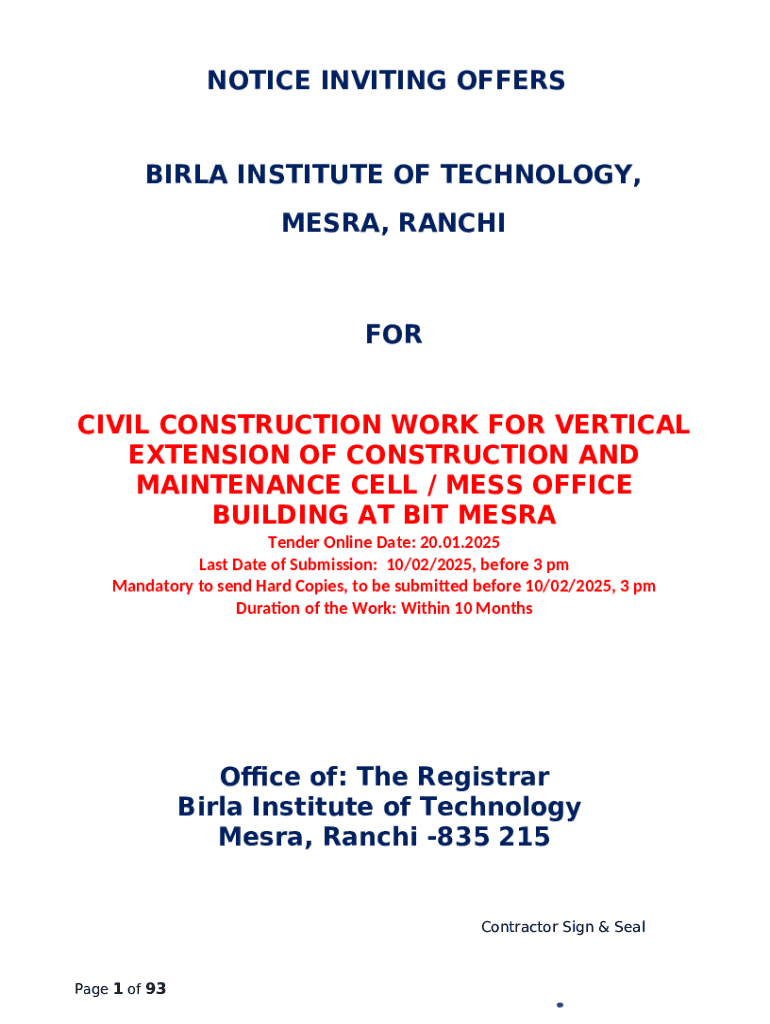 An effective NIO template should be thorough yet clear, ensuring that all necessary information is presented logically. Start with fundamental components such as the title and issue date, clearly indicating that it is a Notice Inviting Offers.