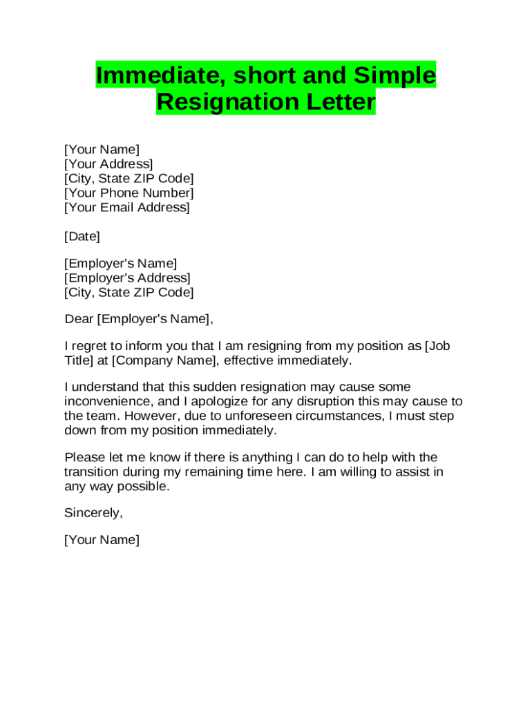 Resignation with Immediate Effect Form: A Comprehensive Guide