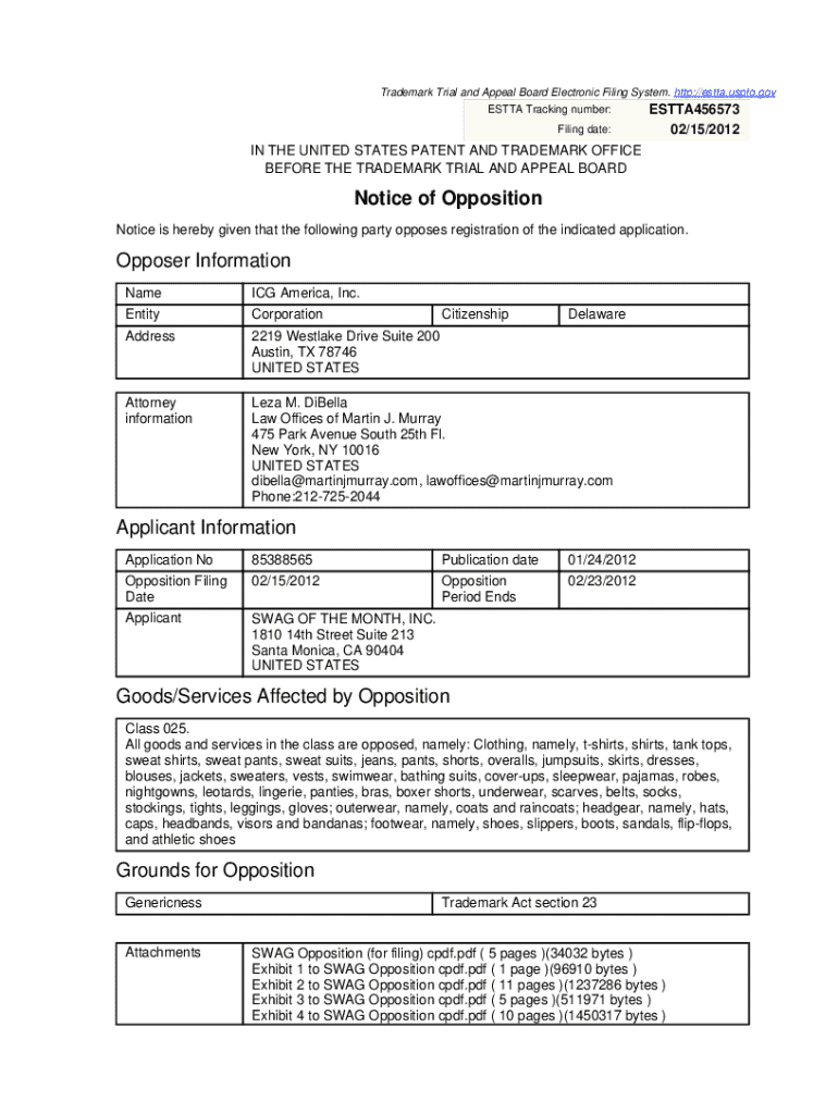 Get the free Notice of Opposition