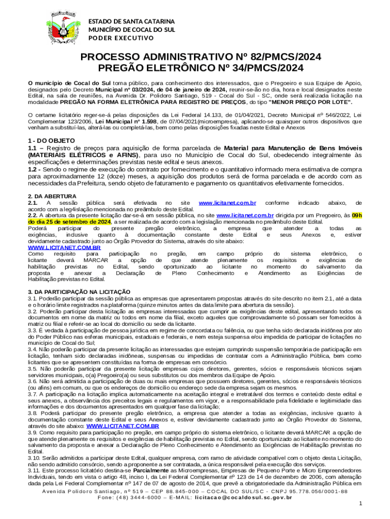 What is Processo Administrativo N? 82/pmcs/2024 Form?