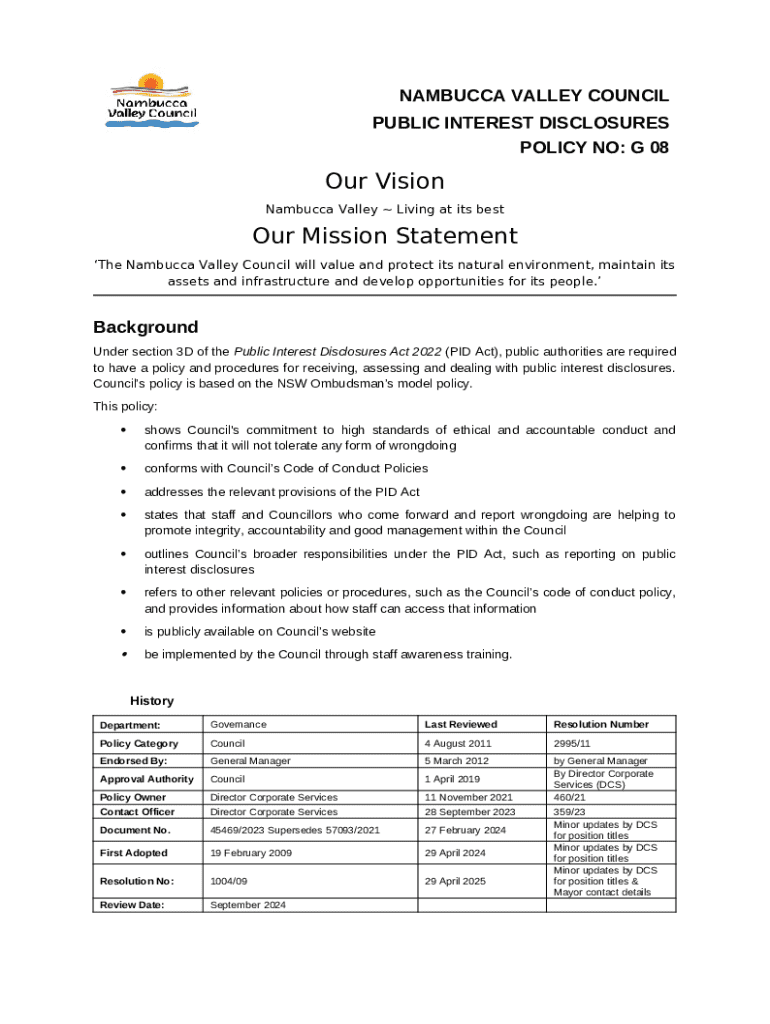 Instructions for the form Nambucca Valley Council Public Interest Disclosures Policy