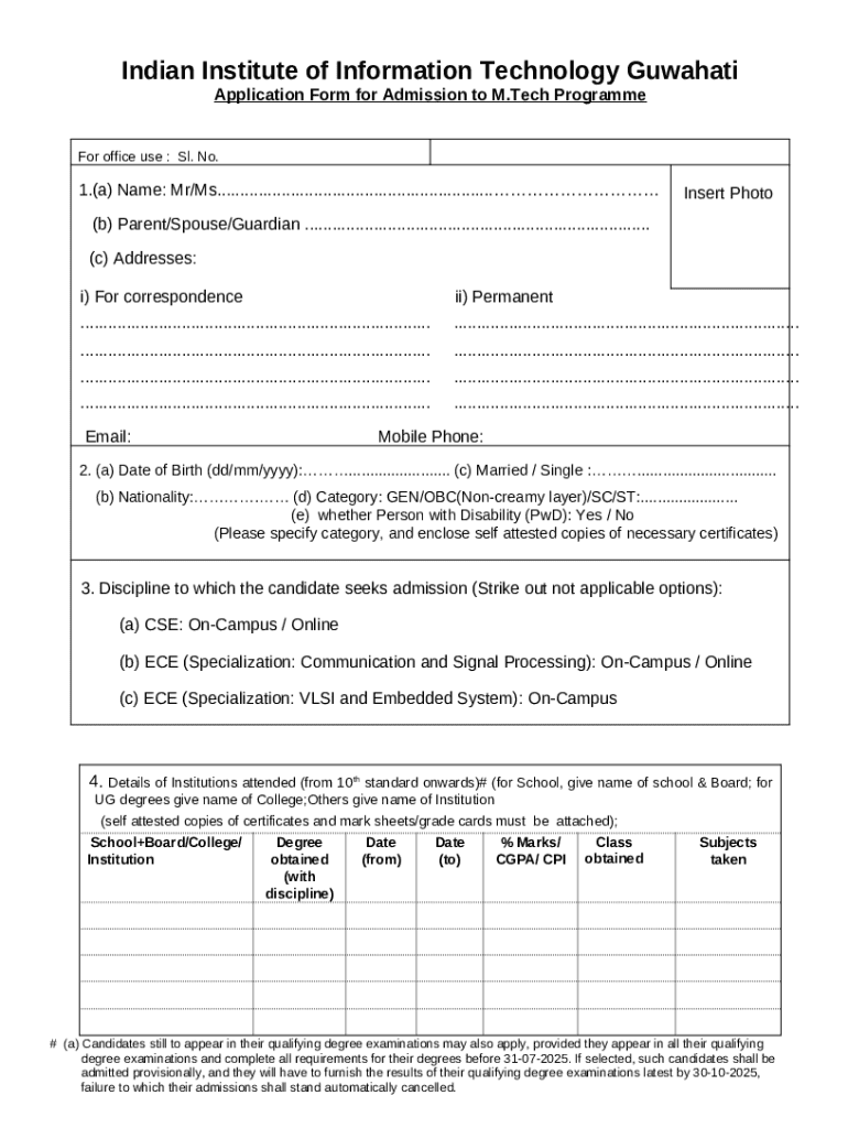 Application for Admission to M.tech Programme template instructions