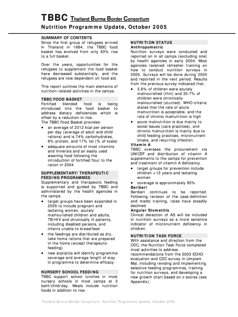 Get the free Nutrition Programme Update, October 2005 - The Border Consortium