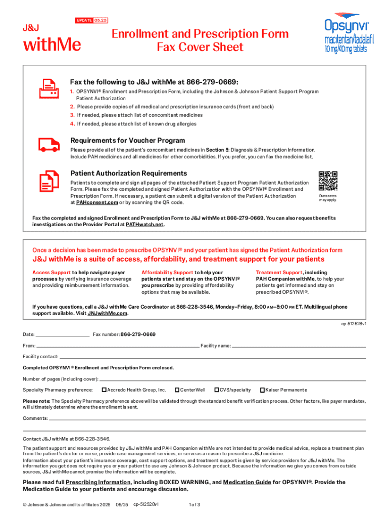 The Opsynvi enrollment and prescription form is a crucial document that facilitates the enrollment process for patients looking to access Opsynvi, a medication used in managing chronic respiratory issues. This form streamlines the process of prescribing the medication and ensures that all necessary patient information is collected effectively.