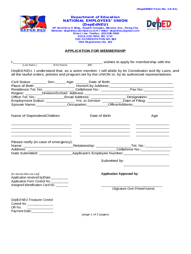 What is Depedneu No. 1/5-01 Form?