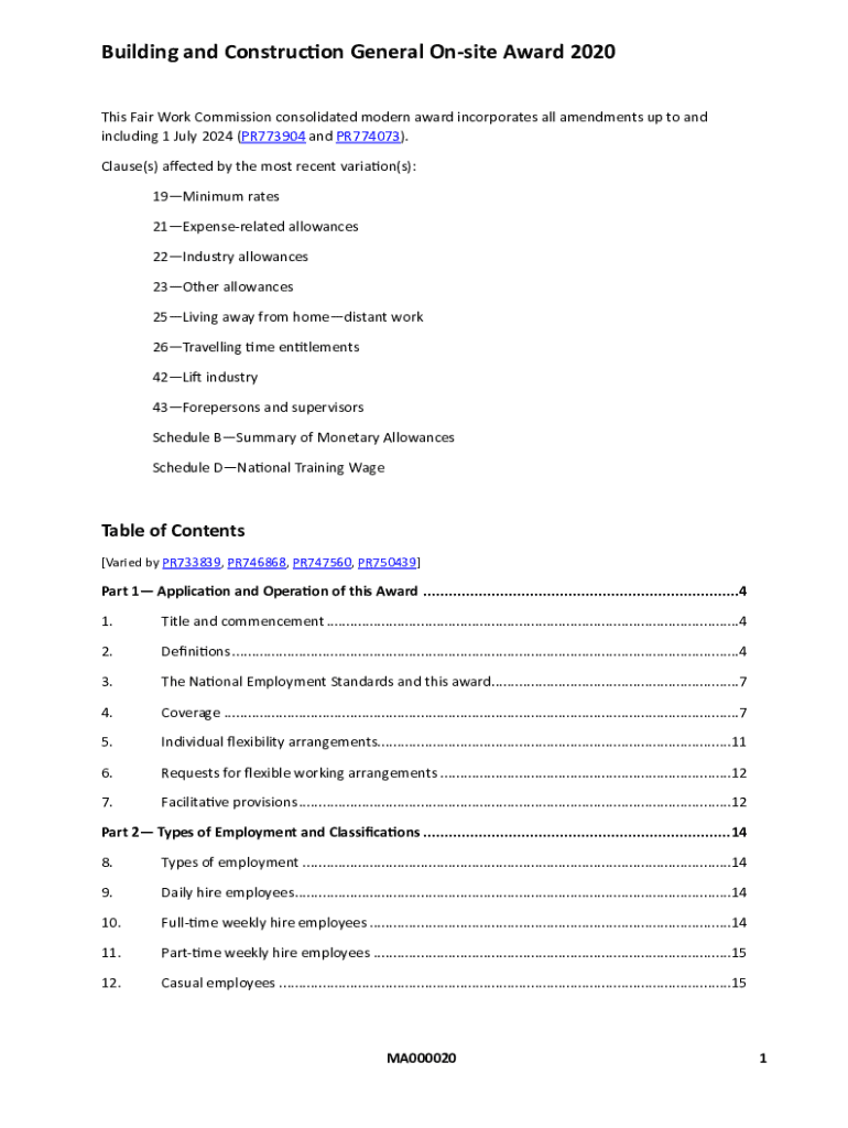 Get the free Building and Construction General on-site Award 2020 - signs org