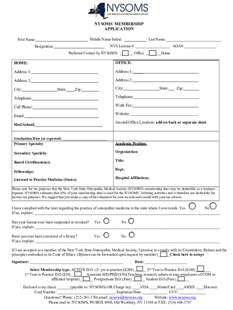 Get the free Nysoms Membership Application