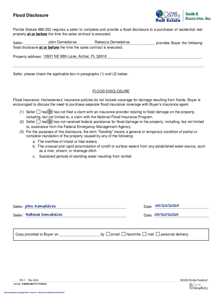A flood disclosure form is a legal document that informs potential buyers or tenants about the history of flooding on a specific property. This form plays a crucial role in real estate transactions, especially in regions that are prone to flooding. It provides essential information that helps buyers make informed decisions, thereby protecting their financial investment and ensuring a level of transparency in the property market.