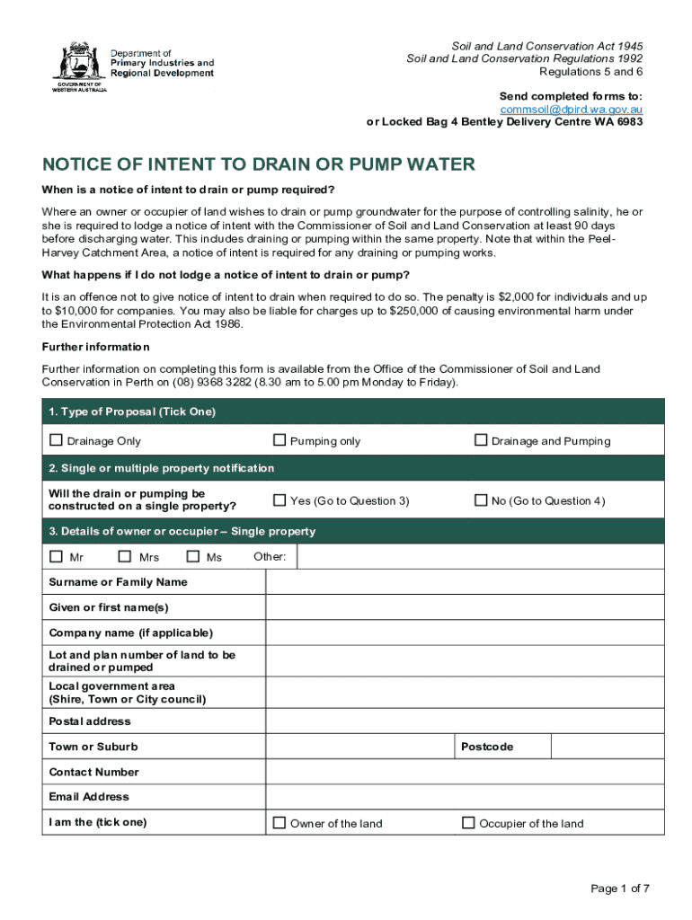 Get the free Notice of Intent to Drain or Pump Water