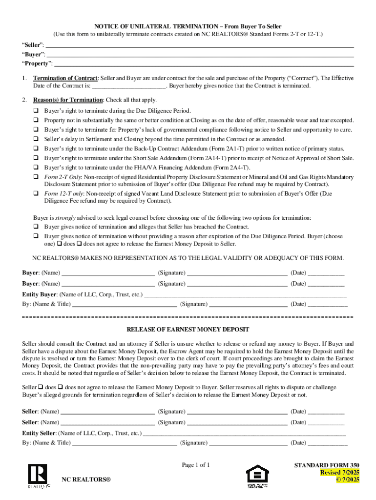 Unilateral termination refers to the act of one party in a contractual agreement deciding to end the contract without the consent of the other party. This type of termination can arise in various contexts, such as employment contracts, rental agreements, and business partnerships. Understanding the nuances of unilateral termination is essential to ensure that its execution is lawful and appropriately documented.