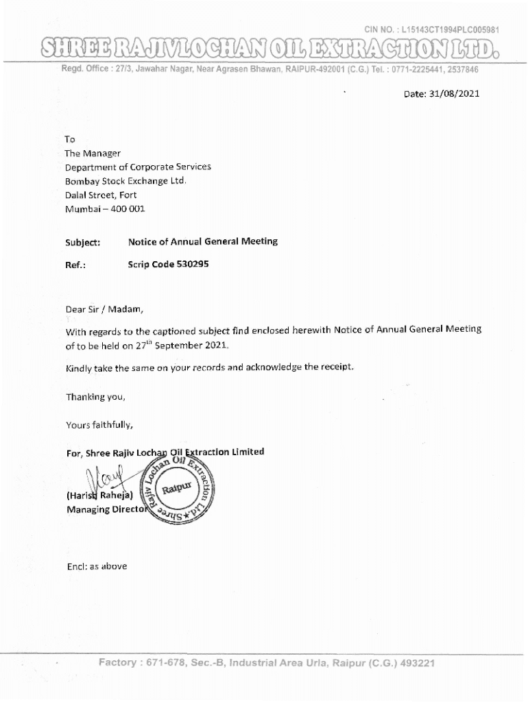 Get the free Notice of Annual General Meeting
