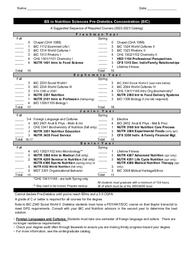 Overview of the BS in Health and Nutrition Form