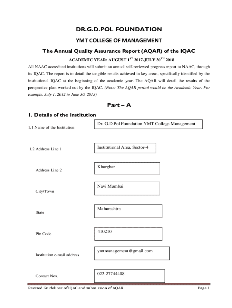 Get the free Annual Quality Assurance Report (aqar)