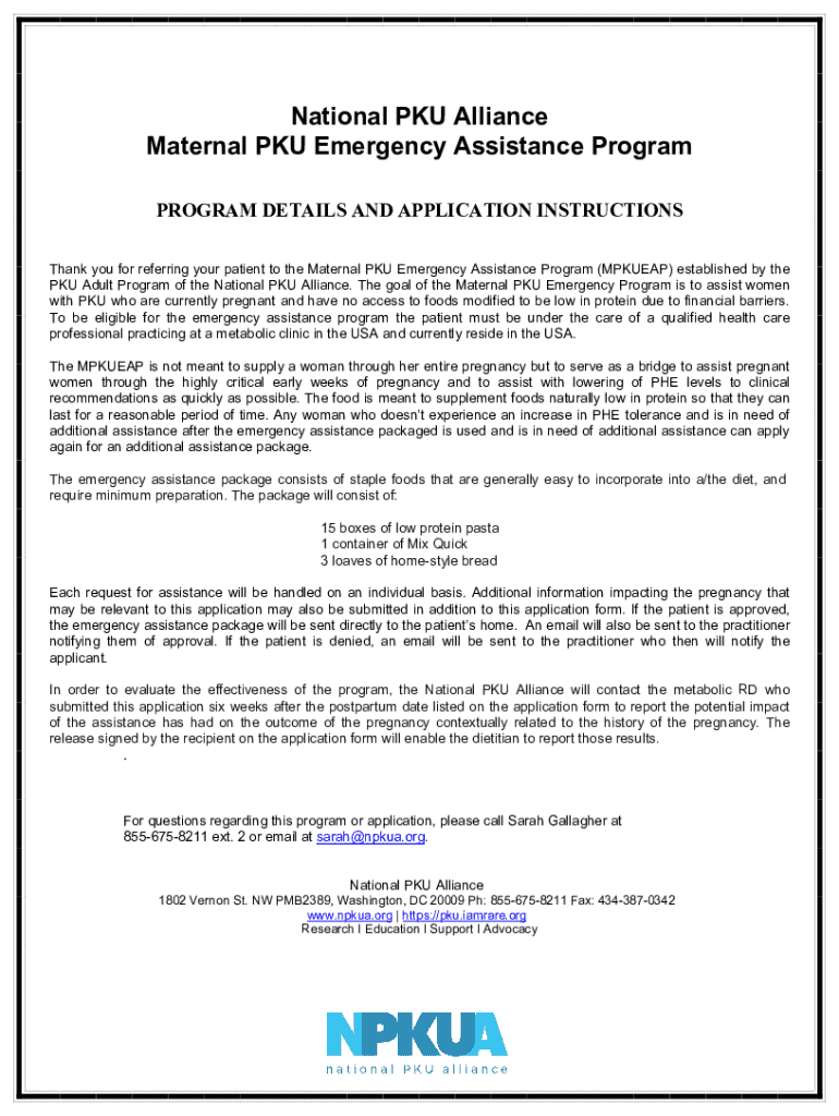 Get the free Npkua Maternal Pku Emergency Assistance Program Application