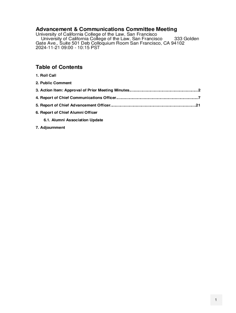 Get the free Advancement & Communications Committee Meeting