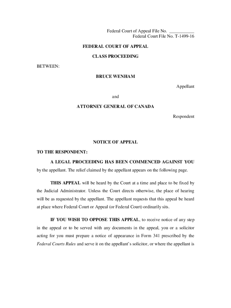 Get the free Notice of Appeal