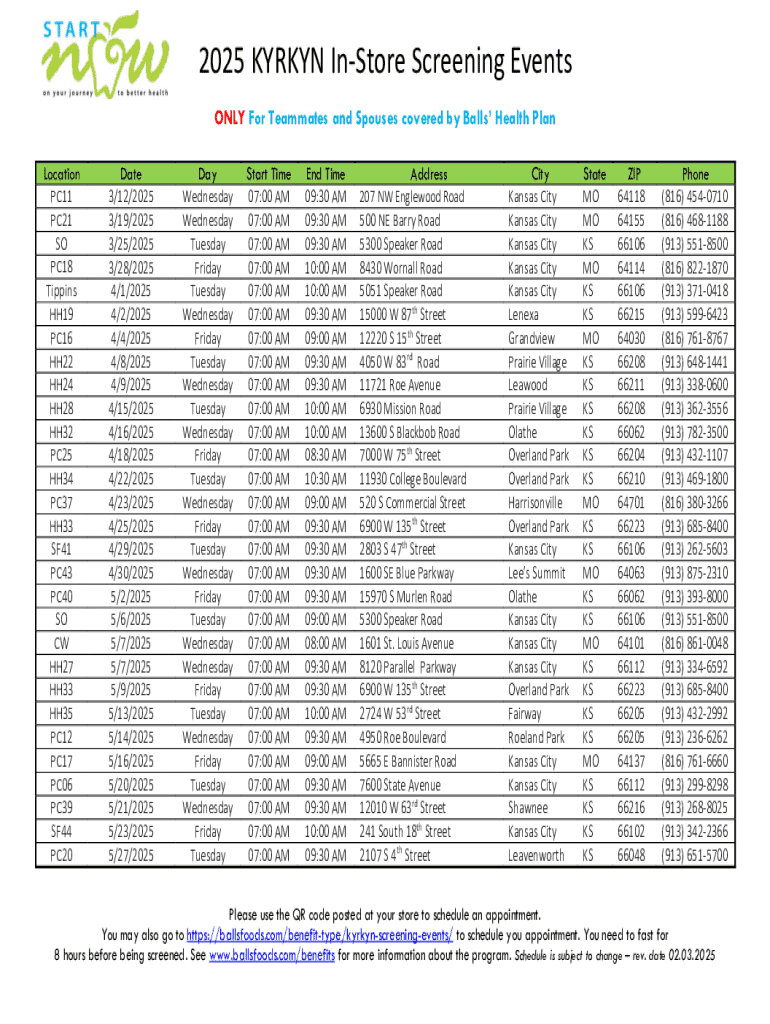 Submitting the 2025 Kyrkyn in-store screening form on time is critical for maintaining operational efficiency and safety standards. Understanding deadlines and their significance can foster a culture of responsibility among customers and staff, promoting adherence to health protocols.
