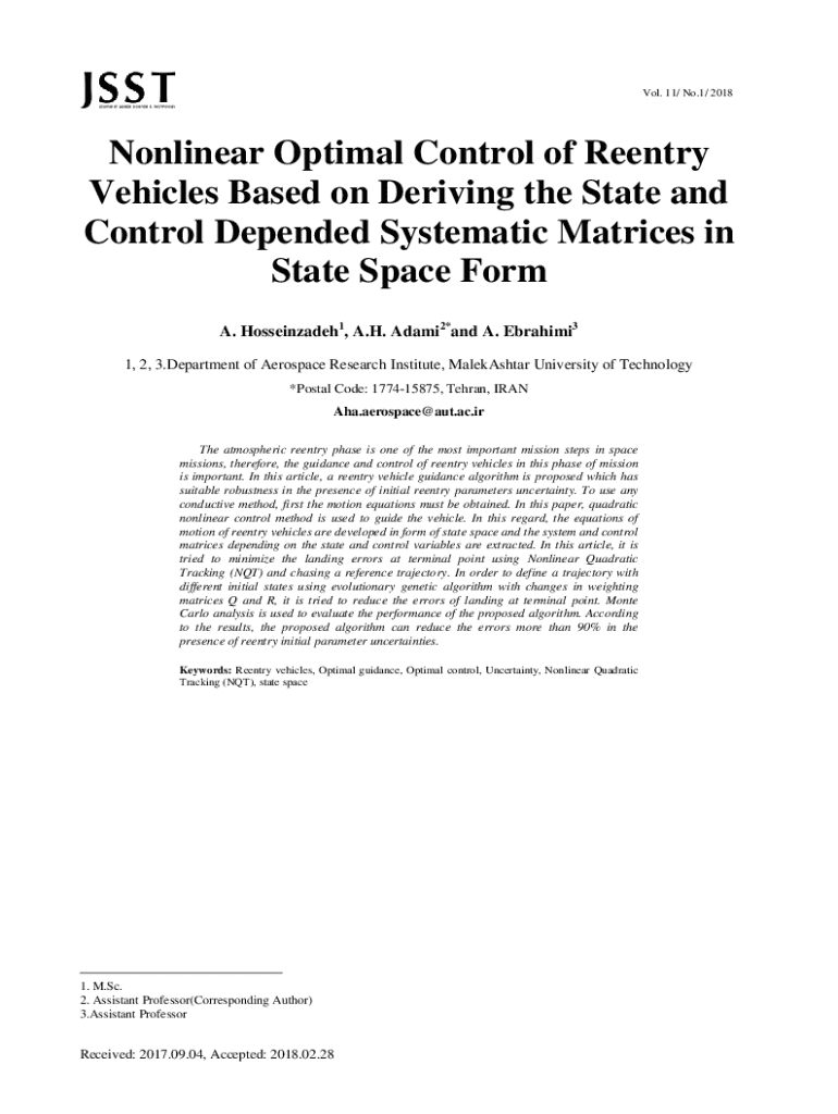 Get the free Nonlinear Optimal Control of Reentry Vehicles Based on Deriving the State and Contro...
