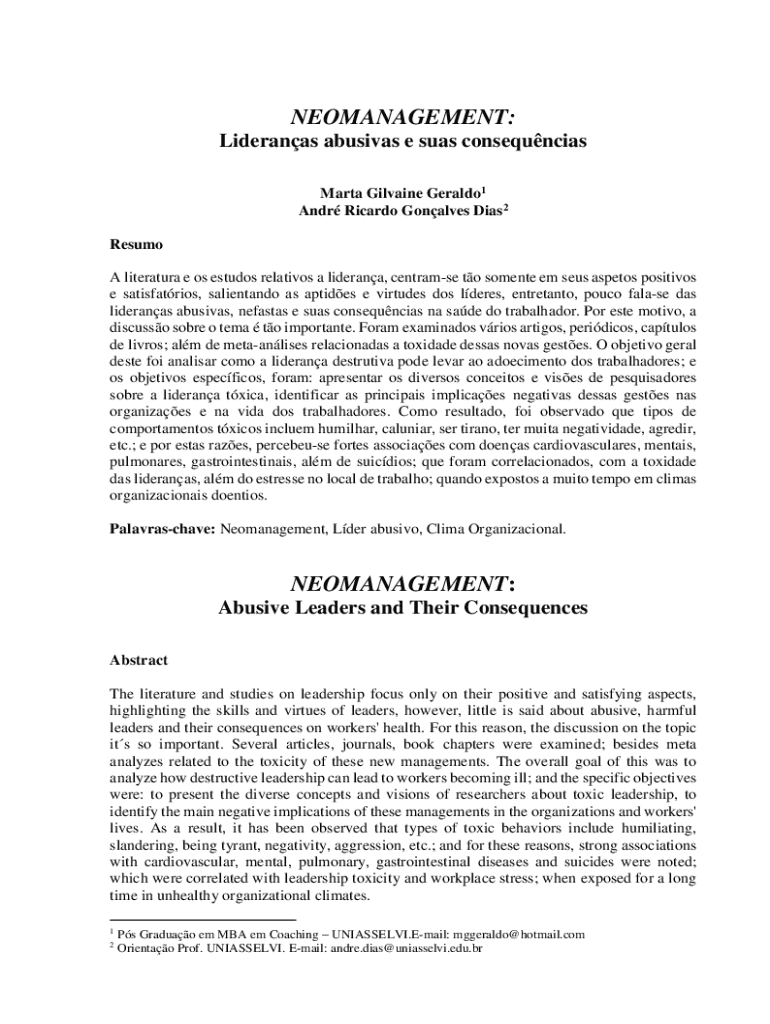 Obtenha o gratuito A M Liderana e suas Consequncias para os Indivduos e