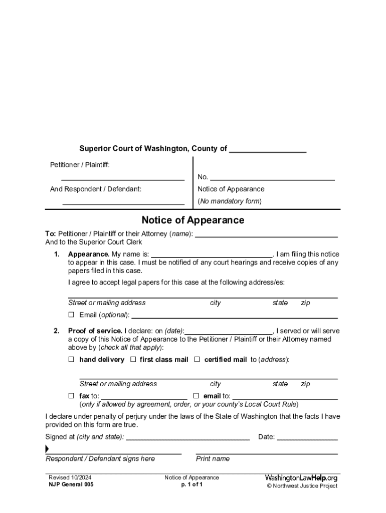 Get the free Notice of Appearance