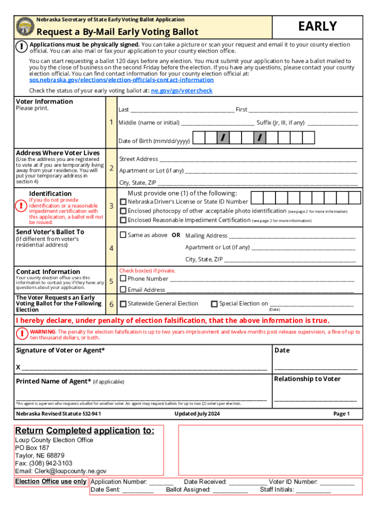 Get the free Nebraska Secretary of State Early Voting Ballot Application