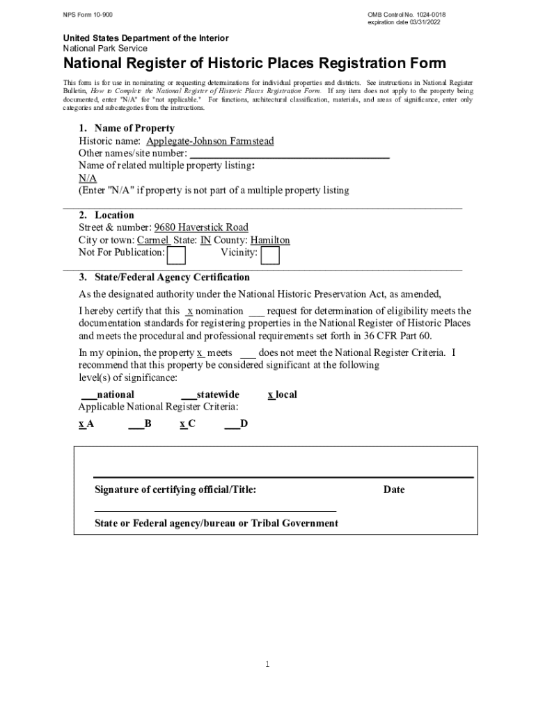 The property owner or an authorized agent wishing to have a property considered for listing in the National Register of Historic Places is required to file NPS Form 10-900.