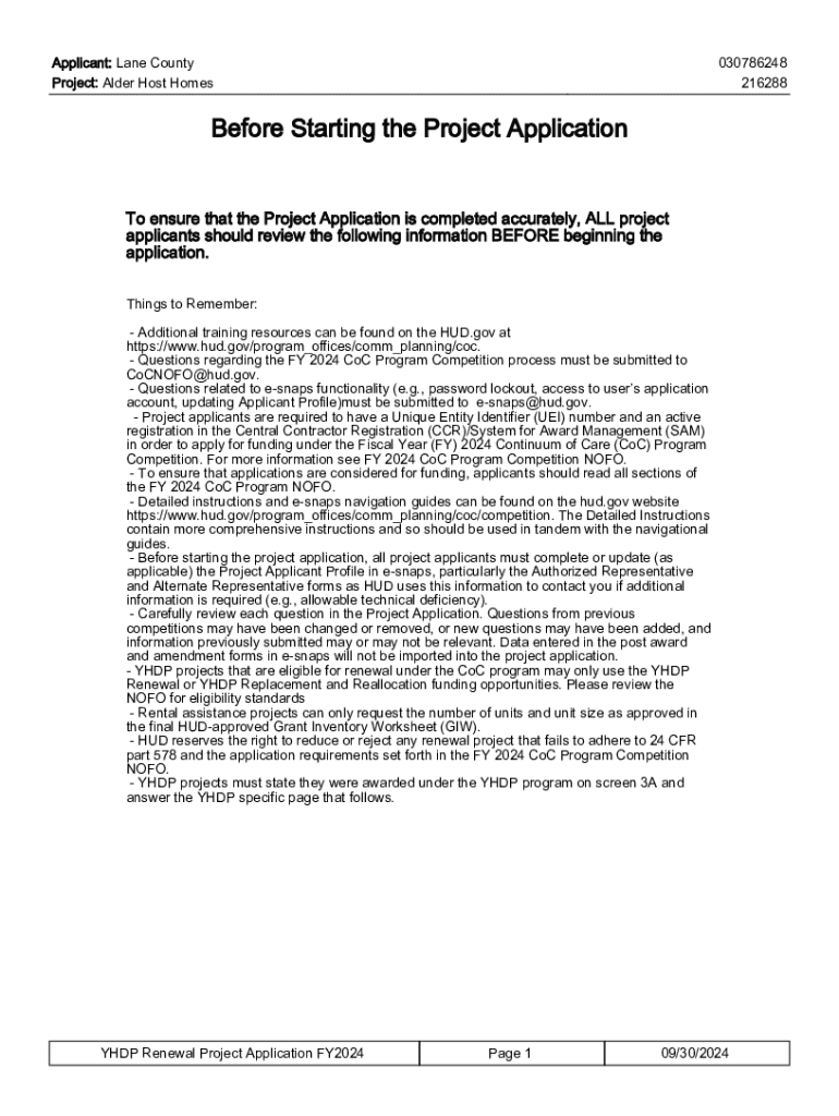 Get the free Yhdp Renewal Project Application Fy2024