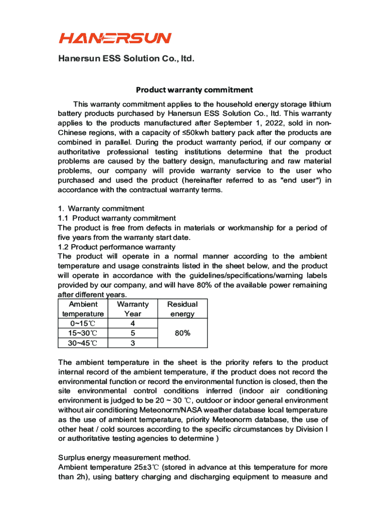 Get the free Limited Warranty for Household Energy Storage Battery ...