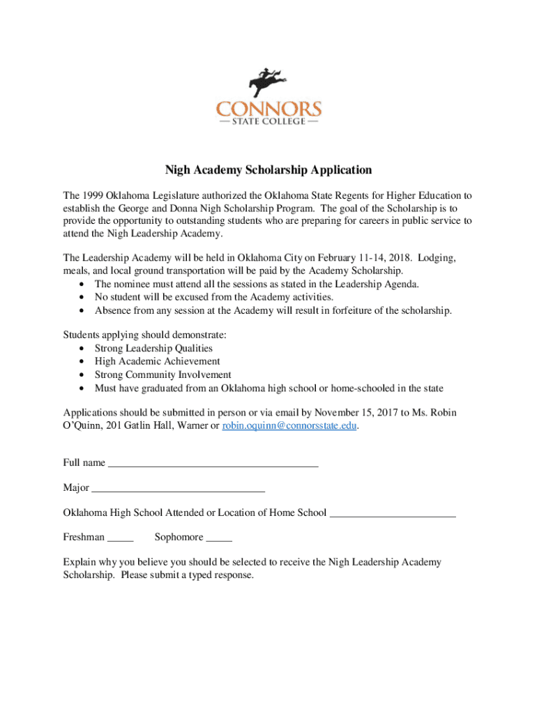 Get the free Nigh Academy Scholarship Application