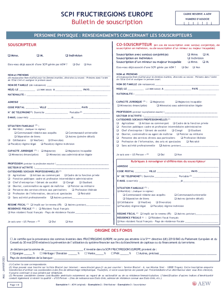 Le remplissage du formulaire SCPI nécessite d'accorder une attention particulière aux différentes sections. Commencez par fournir vos informations personnelles, comme votre nom, votre adresse et vos coordonnées. Ensuite, vous devrez indiquer des détails financiers, tels que vos revenus ou votre patrimoine, afin que la société de gestion puisse évaluer votre profil d'investisseur.
