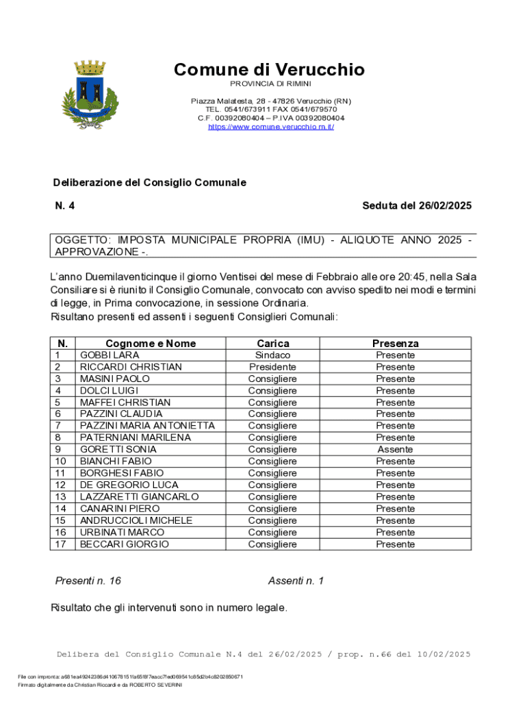 Ottieni il gratuito Delibera Del Consiglio Comunale N. 4 Del 26/02/2025