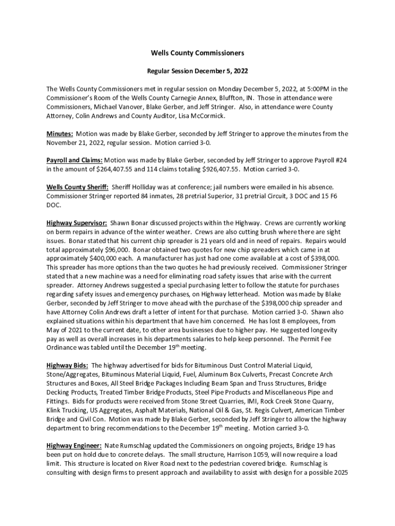 During these regular meetings, important issues such as budget approvals, zoning changes, and public safety are discussed and voted on. The outcomes of these decisions greatly influence the quality of life for residents in Wells County, demonstrating the need for active community participation and awareness.