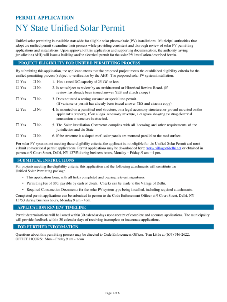 Get the free Ny State Unified Solar Permit