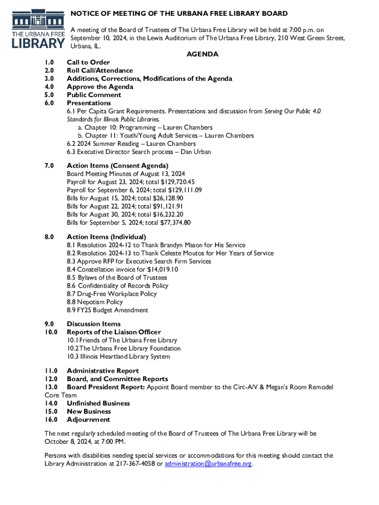 Get the Notice of Meeting of the Urbana Free Library Board