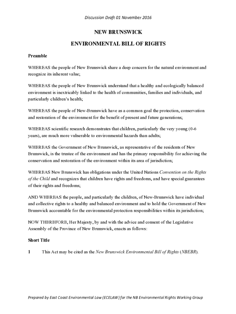 Detailed breakdown of the New Brunswick Environmental Bill Form