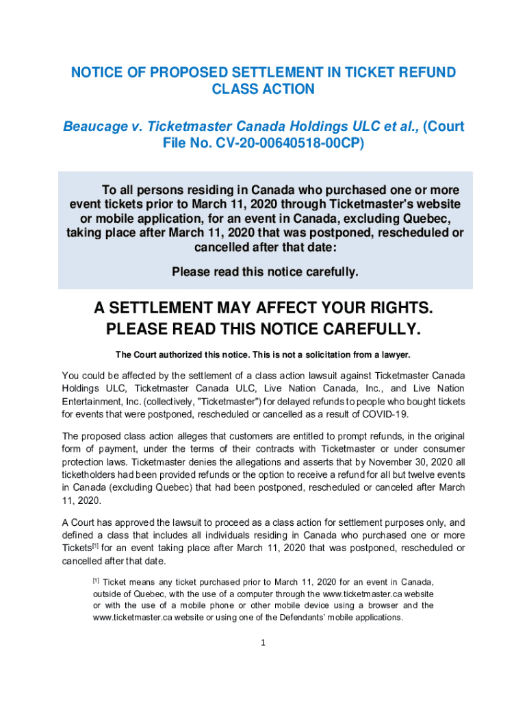 Get the free Notice of Proposed Settlement in Ticket Refund Class Action