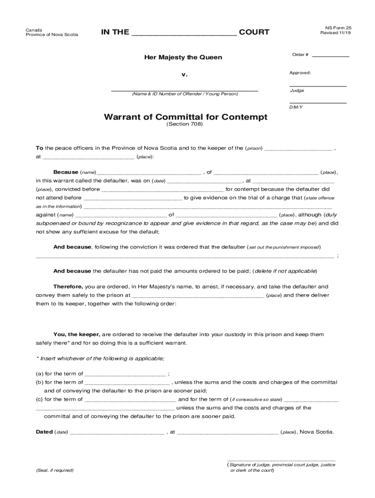 The ns form 25 is a crucial document used in various legal and administrative processes, particularly within Nova Scotia. This form typically serves purposes such as applying for specific permits or licenses, submitting declarations, and other formal requests. It acts as a formal request to the appropriate authorities and helps streamline administrative processes by providing necessary information in a structured format.